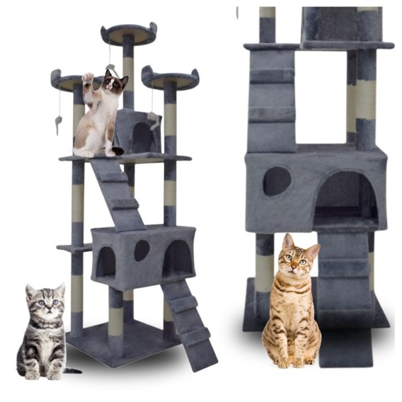 Drapak został zaprojektowany jako uniwersalne centrum aktywności, idealne zarówno dla młodych i energicznych kociąt, jak i dla dorosłych, większych kotów, które potrzebują miejsca do zabawy i komfortowego odpoczynku.