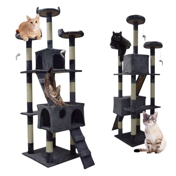 Drapak dla kota 170 cm ciemnoszary domek platformy legowisko zabawki sizal