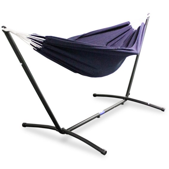 Granatowy Hamak na stelażu ogrodowy zewnętrzny