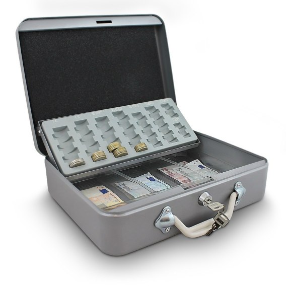 KASETKA NA PIENIĄDZE BILON 30 cm TRANSPORTOWA JASNOSZARA