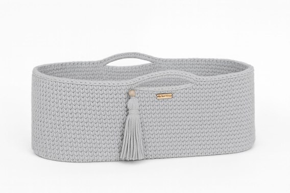 Kosz Mojżesza BOHO bawełniany Handmade z materacykiem - jasny szary