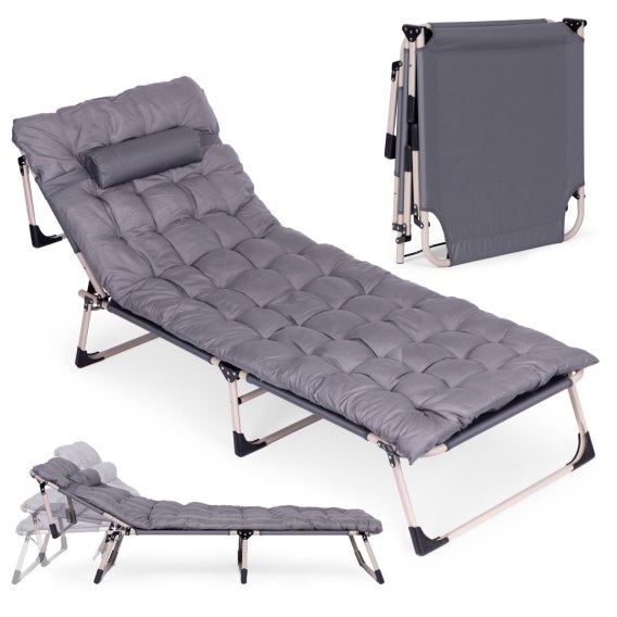 Leżak ogrodowy wędkarski składany z materacem i poduszką szary MultiGarden