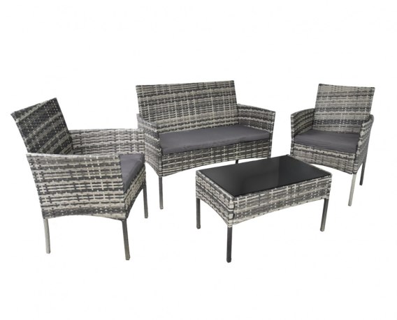 ZESTAW MEBLI RATTANOWYCH DWUOSOBOWY WYPOCZYNEK 2 FOTELE STOLIK KAWOWY W KOLORZE CZARNYM