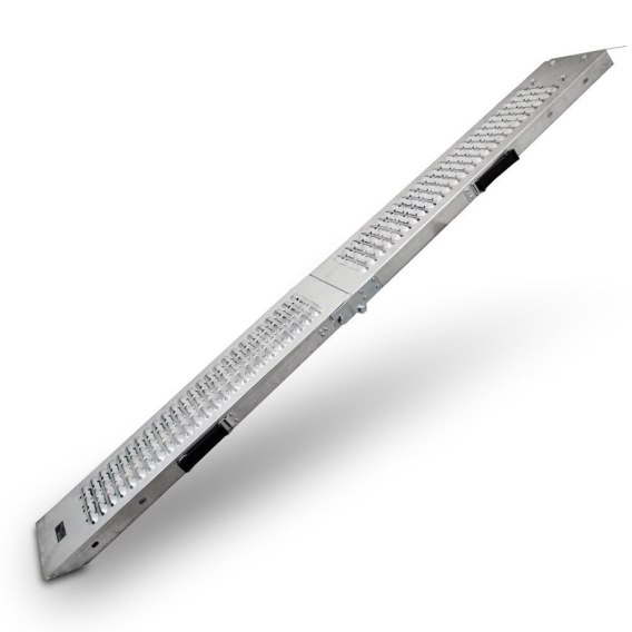 Rampa została wykonana z wysokiej jakości stali, zapewniając dużą wytrzymałość i odporność na uszkodzenia. Otwory na całej długości najazdu zwiększają przyczepność, minimalizując ryzyko poślizgu podczas wjazdu.