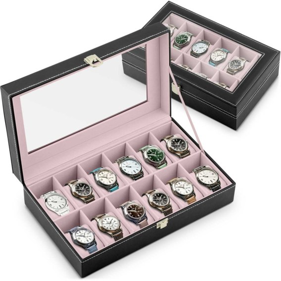 Szkatułka na 12 zegarków Massido MS-710 czarno-łososiowa