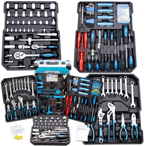 Zestaw 1200 el. to przemyślane połączenie praktycznych narzędzi, wykonanych z wysokiej jakości stali chromowo-wanadowej (Cr-V), zorganizowanych w wygodnej walizce transportowej na kółkach z rączką teleskopową.