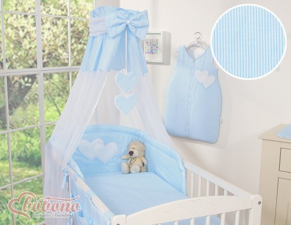 Baldachim z tiulu- Serduszka paski niebieskie