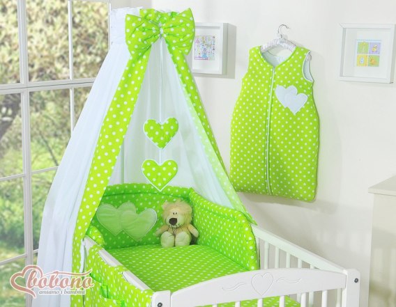 Baldachim z tkaniny- Serduszka białe grochy na zielonym