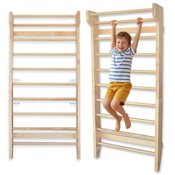 Drabinka gimnastyczna dla dzieci rehabilitacyjna 195cm drewniana z drążkiem