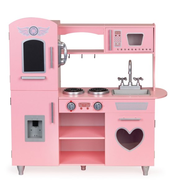 Duża drewniana kuchnia dla dzieci efekty dźwiękowe różowa ECOTOYS