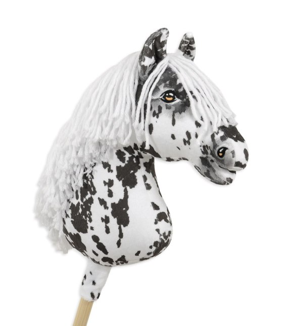 Super Hobby Horse – piękny realistyczny koń na kiju – tarantowaty koń z białą grzywą