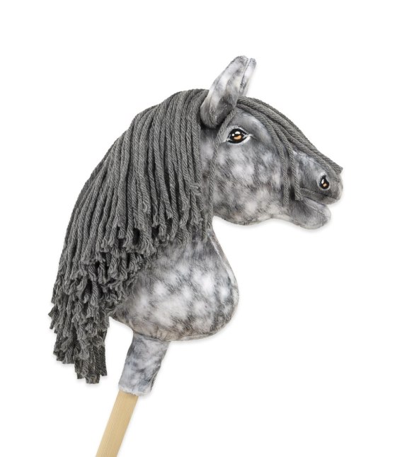 Super Hobby Horse – piękny realistyczny koń na kiju – siwy jabłkowity koń z siwą grzywą