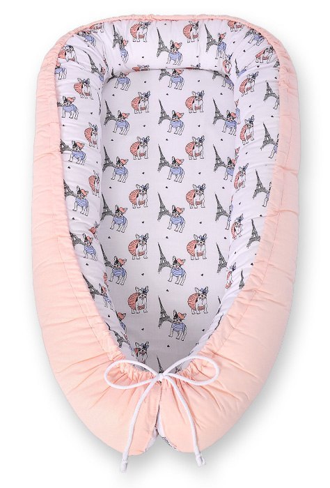 Kokon niemowlęcy dwustronny kojec otulacz Premium BOBONO- buldożki pudrowy róż