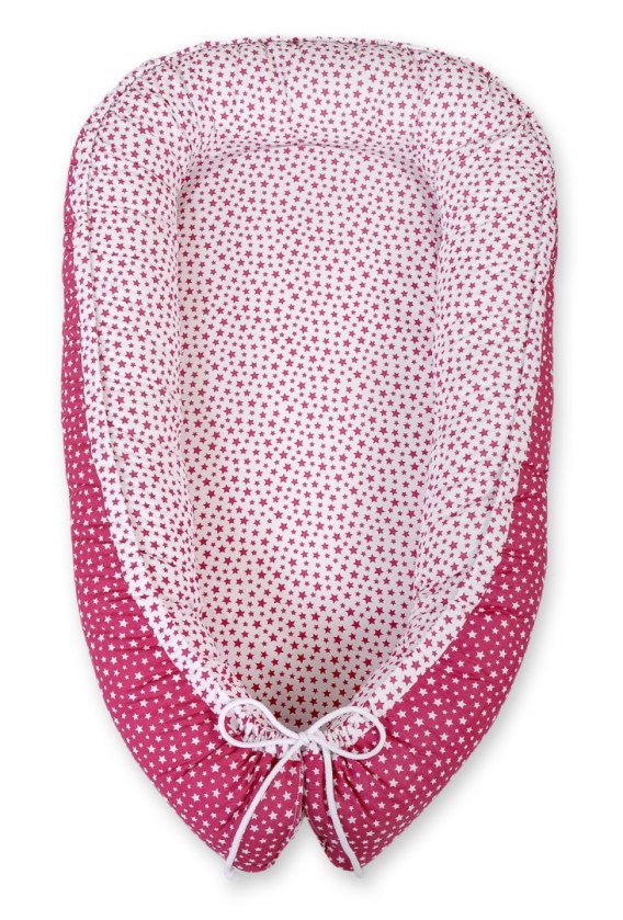 Kokon niemowlęcy dwustronny kojec otulacz Premium BOBONO- gwiazdki bordowe