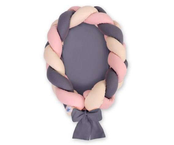 Kokon niemowlęcy pleciony 2 w 1 - beż-brudny róż-antracyt
