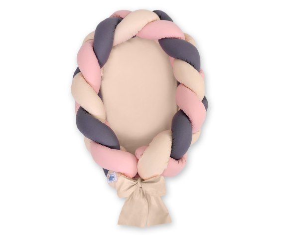 Kokon niemowlęcy pleciony 2 w 1 - beż-brudny róż-antracyt