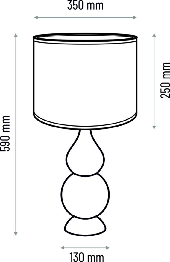 Uroku jak i rozświetlenia lampie stołowej dodaje biały bawełniany abażur o kształcie walca ( fi 25cm) wykończony czarnymi lamówkami. Dzięki temu oświetlenie nabiera nietypowy wygląd i przykuwa oko. Ponadto dzięki wybraniu białego abażuru źródło światła mocniej przenika przez materiał, dając więcej światła.