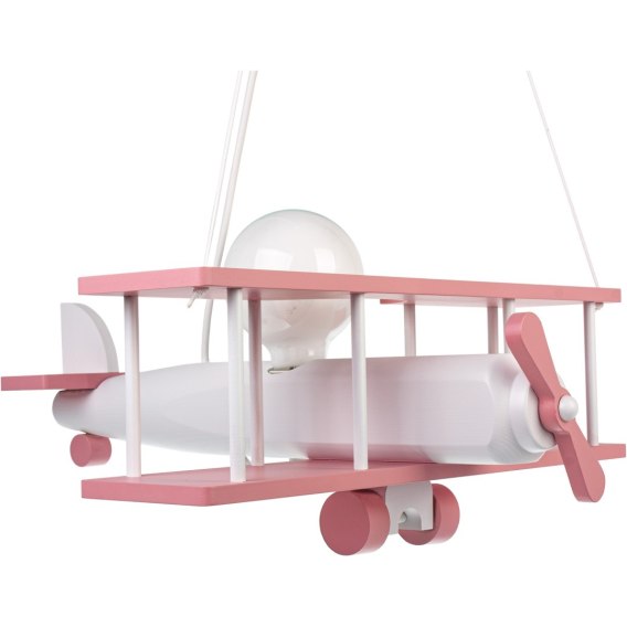 ✔️ Skrzydła w lampie wiszącej jak i pozostałe elementy Samolociku są malowane na delikatny różowy kolor wodną farbą.