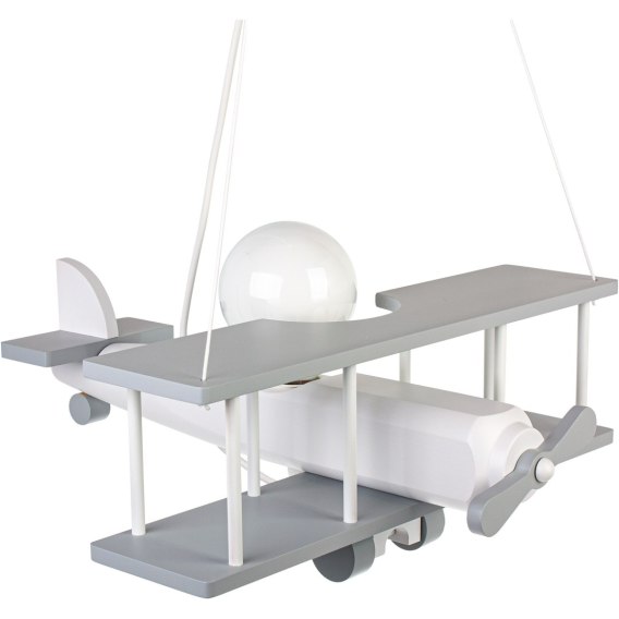 ✔️ Skrzydła w lampie wiszącej jak i pozostałe elementy Samolociku są malowane na delikatny szary kolor wodną farbą.