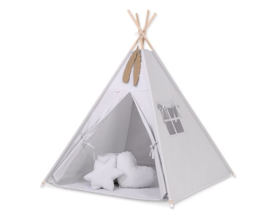 Namiot TIPI dla dzieci + mata + poduszki + zawieszki pióra - szary