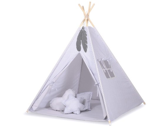 Namiot Tipi dla dzieci+ zawieszki pióra - mini- Rozeta szara