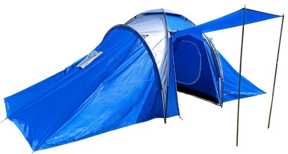 Idealny dla dużych rodzin lub grupy przyjaciół. Znajdziecie w nim miejsce dla maksymalnie 6 osób. Sypialnie są na tyle przestronne, że każdy ma gdzie się wygodnie rozłożyć. I jeszcze przedpokój, który jest idealny na schowanie bagażu czy butów. Osłona przeciwsłoneczna nad wejściem mocowana jest za pomocą dwóch aluminiowych, składanych słupów o wysokości ok. 190 cm. Montaż jest dziecinnie prosty i zajmie tylko 15-20 minut. A po złożeniu namiot zajmuje mało miejsca i jest lekki, więc łatwo go przenosić. Idealny do kampera czy na biwak.