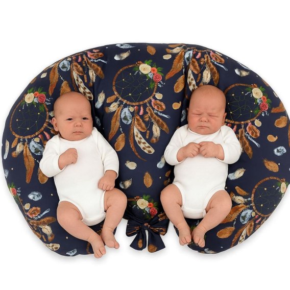 Poduszka rogal do karmienia bliźniąt + zdejmowana poszewka - łapacze snów granatowe