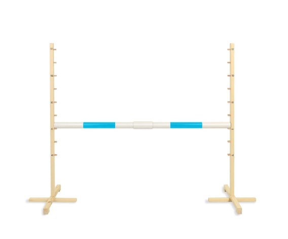 Tyczkę do przeszkody można ustawić na wysokości od 40 cm do 120 cm, w zależności od wzrostu i możliwości motorycznych Dziecka. Poprzeczka została zaprojektowana tak, by spadała podczas potrącenia nogą. Nie ma możliwości, by Dziecko przewróciło się podczas skoku.