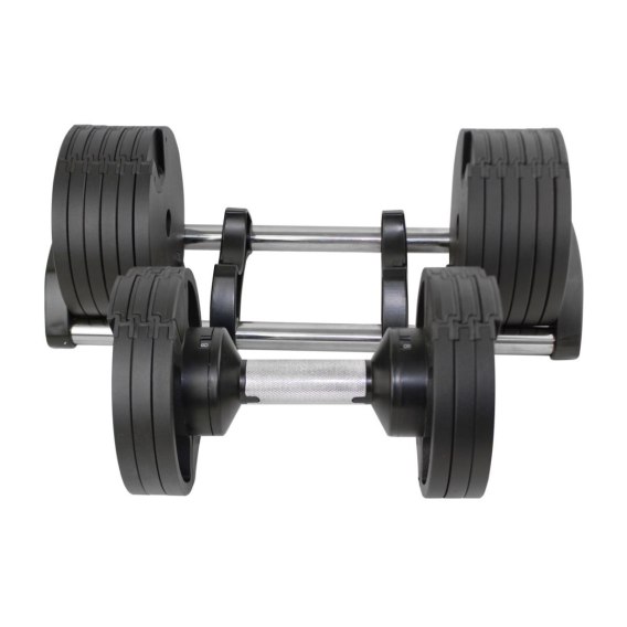 Hantla MASTER Spin to produkt wysokiej jakości, zaprojektowany z myślą o jak najdłuższej żywotności. Będziesz mógł przez lata śledzić swoje codzienne postępy treningowe, stopniowo zwiększając obciążenie. Obciążenie jest w pełni regulowane od 2,5 do 32 kg, wystarczy przekręcić uchwyt hantli, aby wybrać żądaną wagę.
