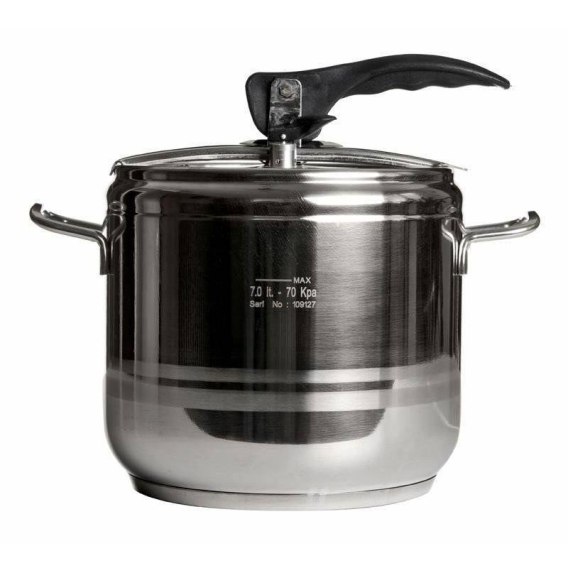PRZYDATNY - Szybkowar o pojemności 7 litrów. Pomoże zaoszczędzić czas podczas przygotowywania posiłków. Szybkowar ma wymiary 19,5 x 26 x 22 cm.