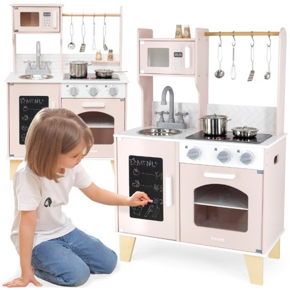 Wspólne przygotowywanie posiłków to doskonała nauka poprzez zabawę. W każdej kuchni znajduje się zlew, piekarnik oraz kuchenka, w której można stworzyć ulubione dania dla całej rodziny. Wspaniały zestaw do zabawy w kuchni dla dzieci, dzięki któremu dzieci mogą gotować i przygotowywać pyszne posiłki dla rodziny lub przyjaciół. Nauka korzystania z narzędzi kuchennych podczas zabawy, kreatywne myślenie i wyobraźnia dzieci mogą zostać doskonale pobudzone.