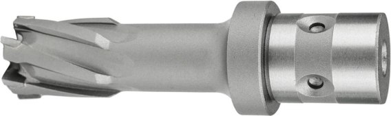 Wykonanie: z chwytem QuickIN, otwór wewnętrzny 6,35 mm. Zastosowanie: do stosowania w wiertarkach magnetycznych lub słupowych z mocowaniem QuickIN. Wiertło rdzeniowe skrawa tylko cienki pierścień materiału. Pozostający rdzeń jest wypychany przez kołek wypychacza za pomocą siły sprężyny. Wióry są odprowadzane szybko na zewnątrz, co minimalizuje niebezpieczeństwo złamania narzędzia. Wykonanie nawet dużych średnic wierconych otworów wymaga stosunkowo niewiele energii. W porównaniu z wiertłem krętym wiertło rdzeniowe skrawa tylko niewielką część całkowitej powierzchni. W efekcie uzyskiwana jest bardzo duża oszczędność energii i czasu.