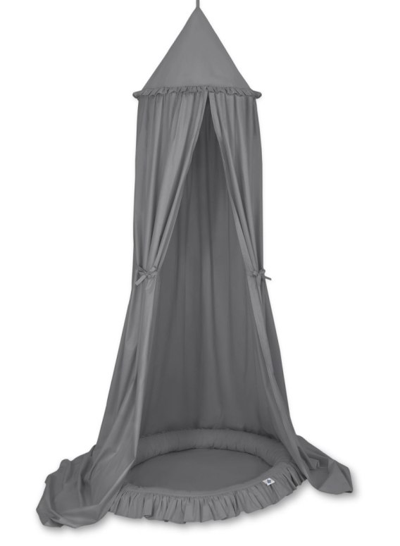 Zestaw: baldachim wiszący do pokoju dziecięcego bawełniany i gniazdko z falbanką - antracyt