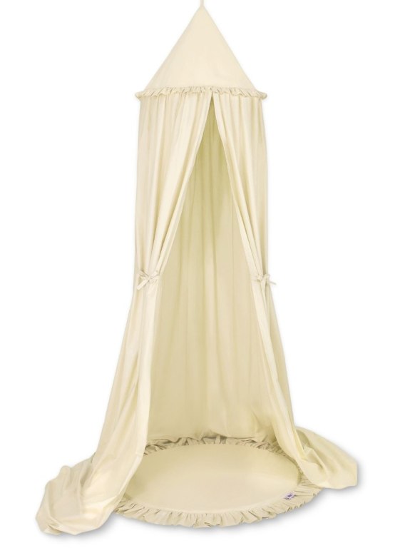 Zestaw: baldachim wiszący do pokoju dziecięcego bawełniany i mata z falbanką - kremowy