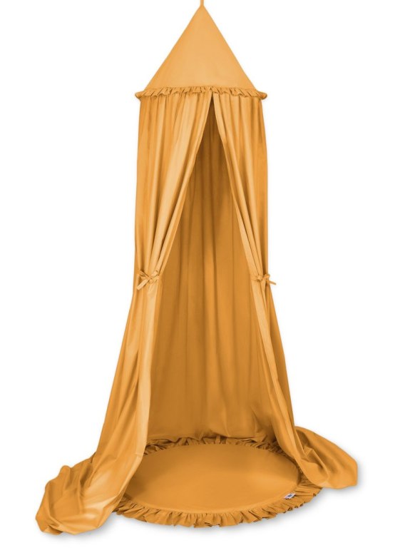 Zestaw: baldachim wiszący do pokoju dziecięcego bawełniany i mata z falbanką - musztardowy