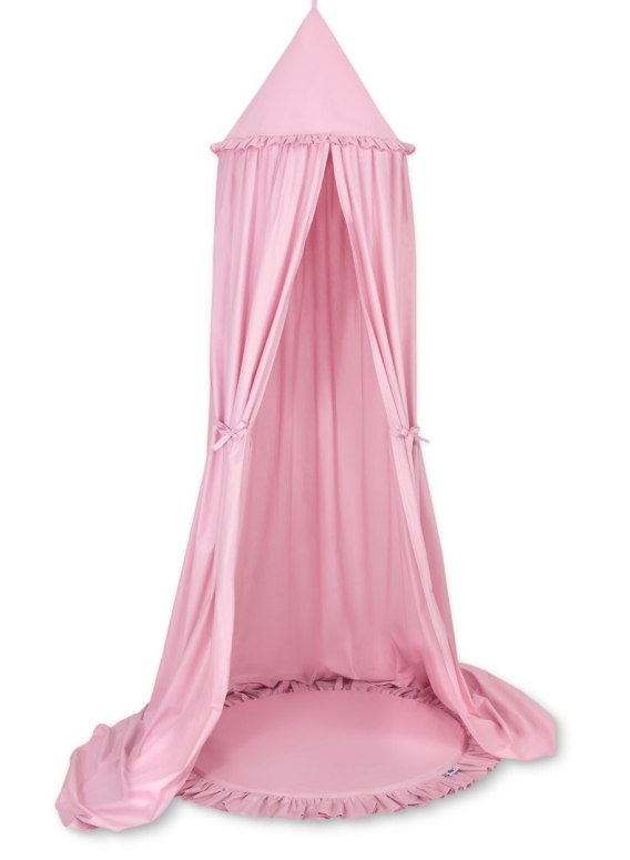 Zestaw: baldachim wiszący do pokoju dziecięcego bawełniany i mata z falbanką - różowy