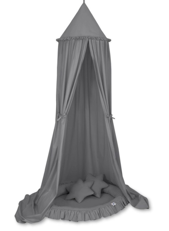 Zestaw: baldachim wiszący do pokoju dziecięcego, gniazdko z falbanką, poduszki - antracyt