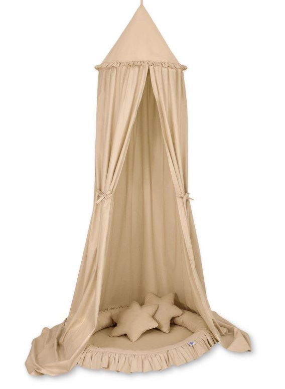 Zestaw: baldachim wiszący do pokoju dziecięcego, gniazdko z falbanką, poduszki - beżowy