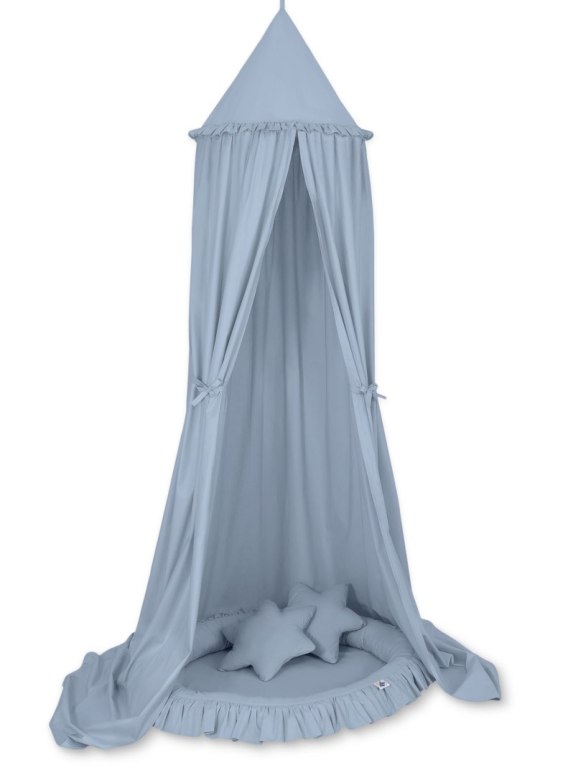 Zestaw: baldachim wiszący do pokoju dziecięcego, gniazdko z falbanką, poduszki - brudny niebieski