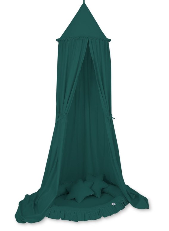 Zestaw: baldachim wiszący do pokoju dziecięcego, gniazdko z falbanką, poduszki - butelkowa zieleń