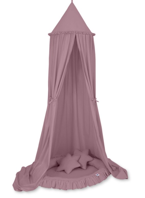 Zestaw: baldachim wiszący do pokoju dziecięcego, gniazdko z falbanką, poduszki - róż retro