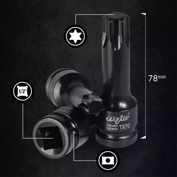 Zestaw nasadek trzpieniowych udarowych 1/2" TORX długich na szynie