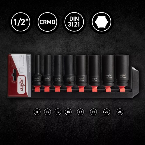 Zestaw nasadek udarowych długich 1/2" 6-kąt